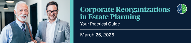 Don’t miss this opportunity to gain hands-on practical guidance from corporate and estates lawyers on managing corporate reorganizations undertaken as part of an overall estate plan.