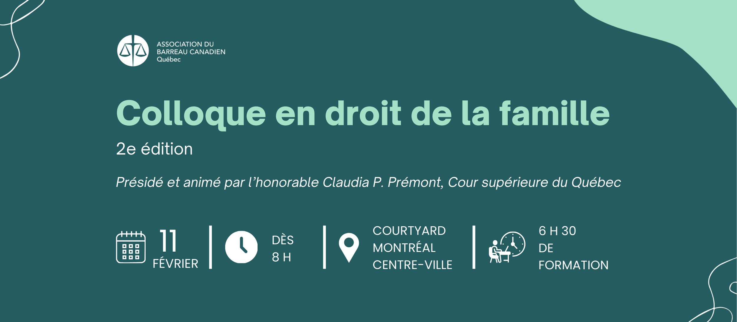 Sous la présidence de l’honorable Claudia P. Prémont, juge à la Cour supérieure et avec la participation de conférenciers de renom, ce colloque offrira aux participants une occasion privilégiée d’enrichir leurs pratiques, de découvrir de nouvelles approches et de partager leur expérience avec leurs pairs.