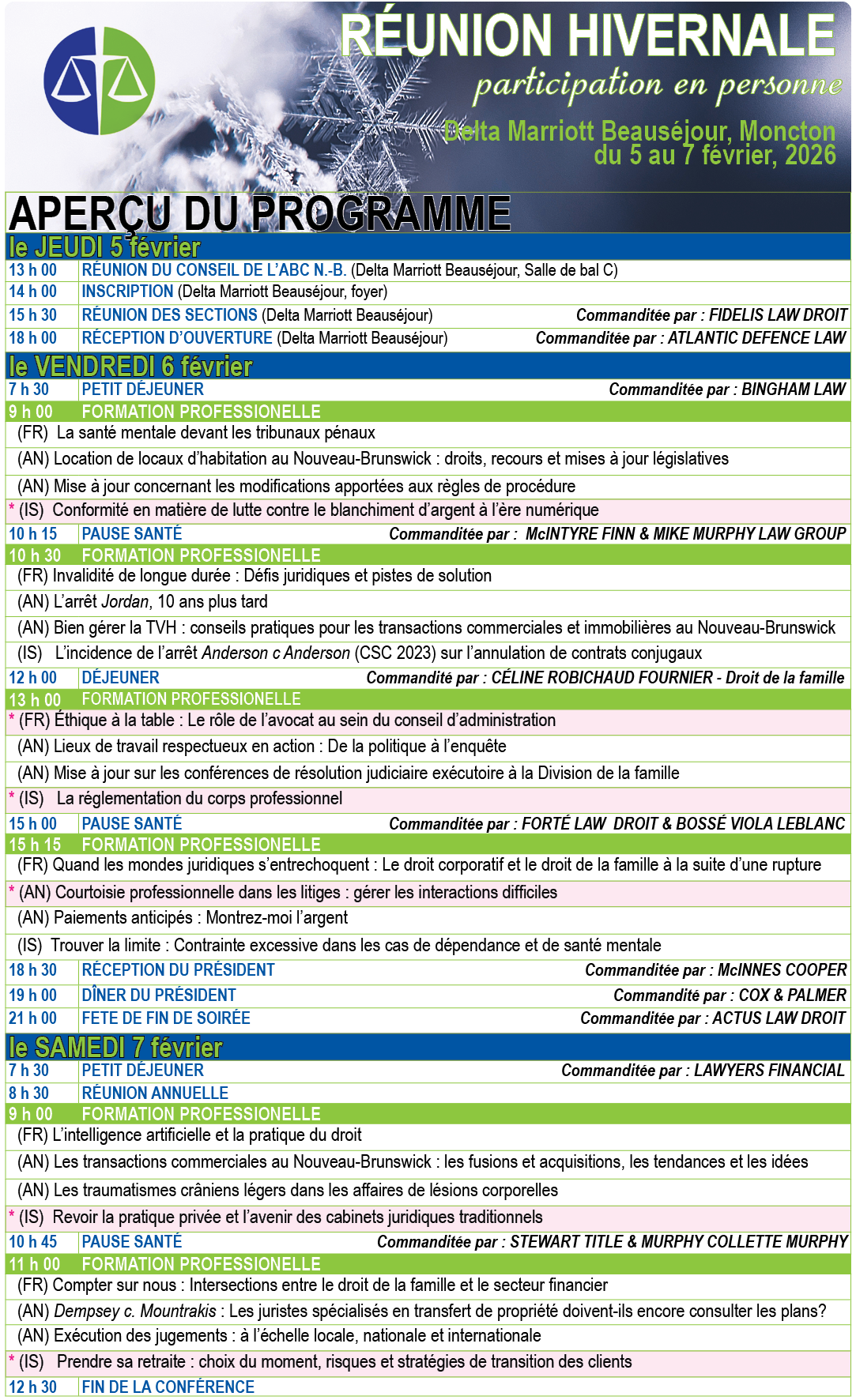 Inscrivez-vous pour le programme complet d'ici le 7 janvier 2026 pour profiter du tarif réduit et pour participer au tirage au sort pour la chance de gagner une inscription gratuite à la Réunion hivernale 2027.
