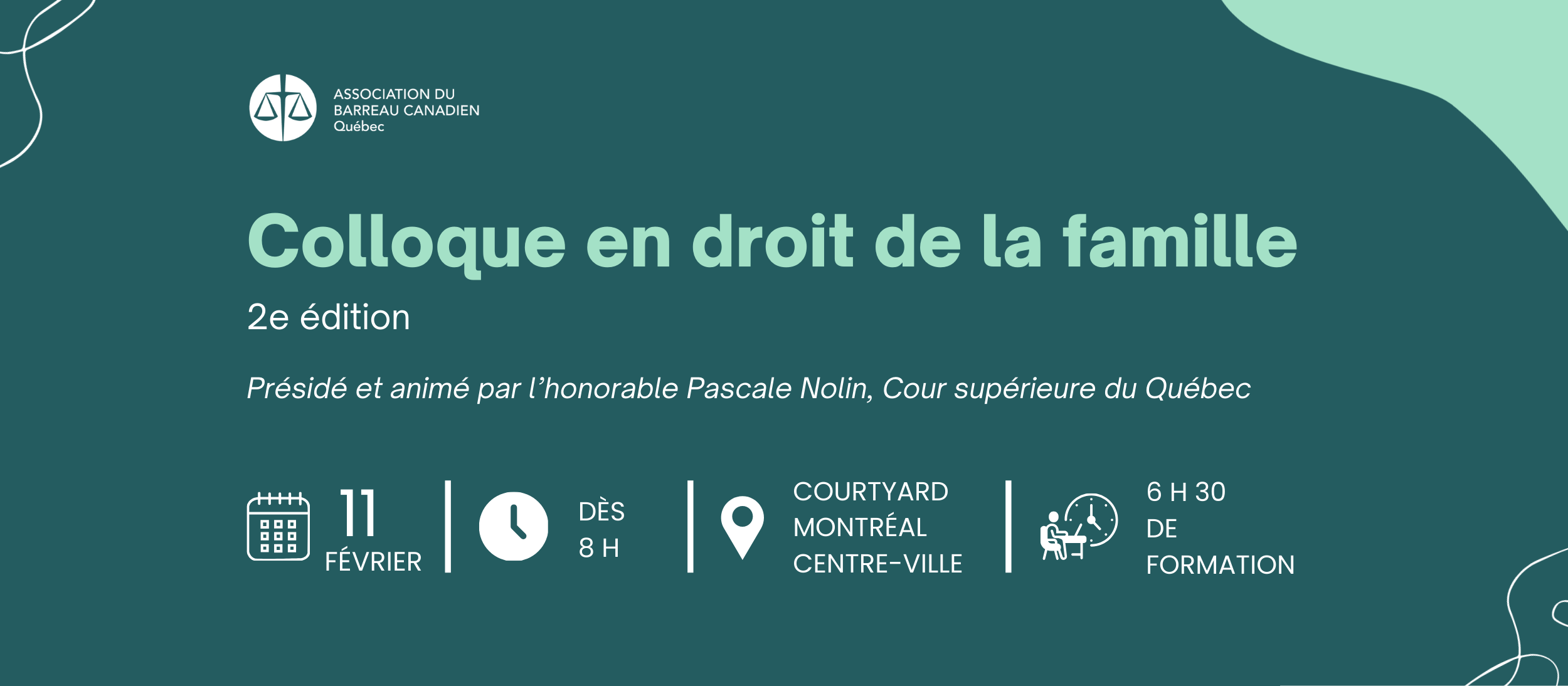 La section de droit de la famille de l'ABC-Québec vous invite à la deuxième édition de son Colloque en droit de la famille, une journée complète de conférences, d’échanges et de réflexions avec des formateurs chevronnés.